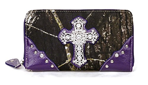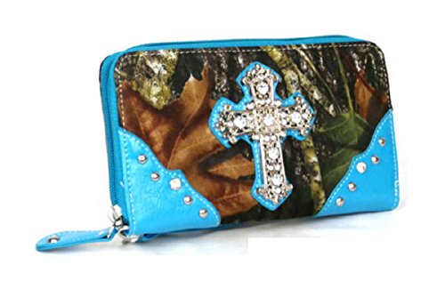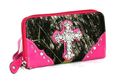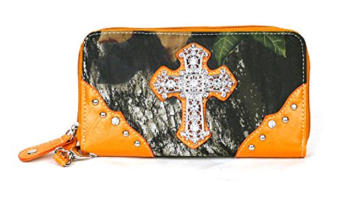 (DH)/Accessories/Handbags/DIRECT FROM USA/DH JP Camo Bling Rhinestone Cross Spiritual Womens Western Zipper Wristlet Wallet