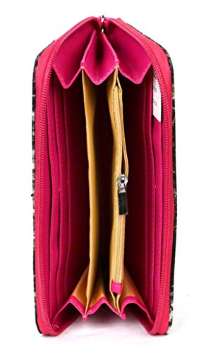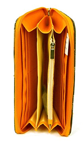 Product Description Camo zipper wallet approx. 8" X 4.5" X 1.25", zip around closure, detachable wrist strap, card slots, currency slot and inside zip coin pocket. 0