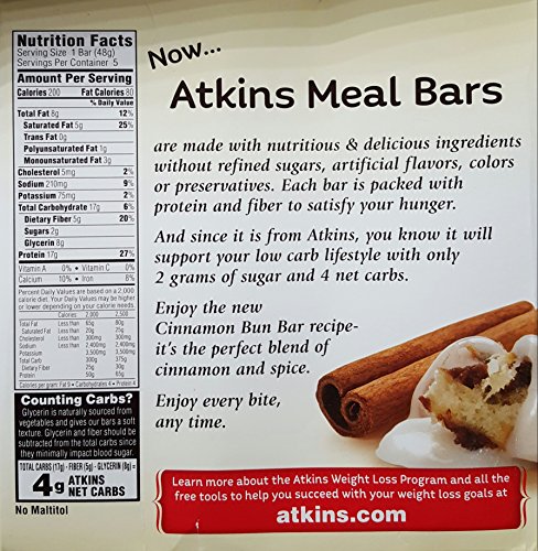 Product DescriptionAtkins Advantage Bar Cinnamon Bun - 5 Bars Pack Of 10