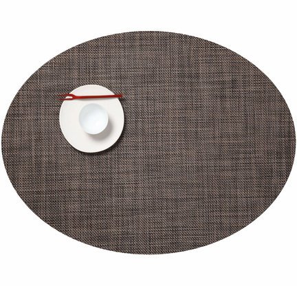 Studio : Chilewich Publisher : Chilewich Product Description A subtler version of the Basketweave pattern, Mini Basketweave is a bit more refined with less texture in a new oval shape. Sophisticated woven placemats by award-winning textile designer Sandy Chilewich. Especially stunning under our contemporary place settings. Durable vinyl-weave linens wipe clean. Made in the USA. 14" x 19". Placemats are sold individually, not as a set. 0