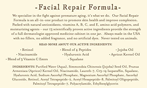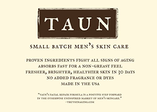 Fight signs of aging and dry skin with the Men's Facial Repair Formula from TAUN. TAUN Small Batch Men's Skin Care started as a couple of guys approached their 30s and wanted to know how to improve their skin as they aged. There were plenty of moisturizers out there and anti-aging products that promised to slow the signs of aging, but the field of skin care for men had a shortage of premium, high end products that actually worked. Through countless hours of research with chemists, dermatologists and speaking with customers, TAUN introduced their Facial Repair Formula. With a slew of impressive active ingredients and a bent towards natural skin care, it is the best product available in a market sorely missing this sort of quality.Feature