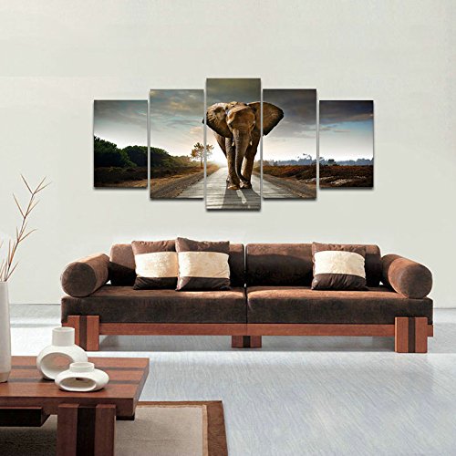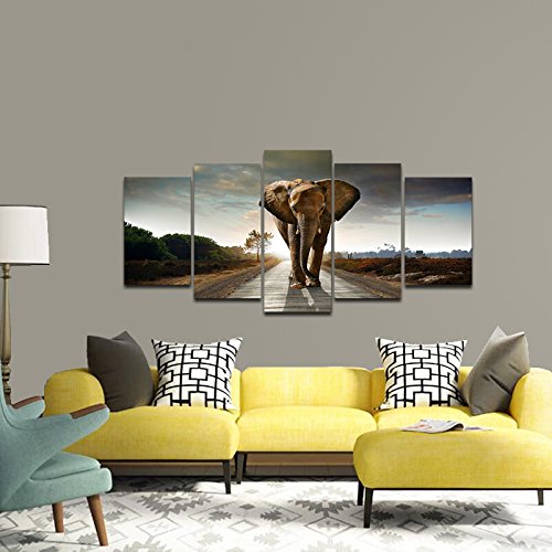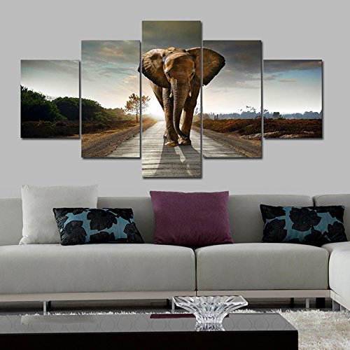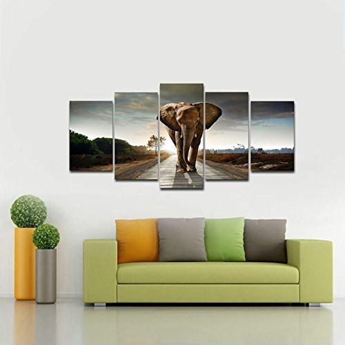 -. Title : Wieco Art Elephant 5 Panels Modern Giclee Canvas P.R.Ints Animals Landscape Artwork Pictures to Photo Paintings on Canvas Wall Art D¨¦cor for Living Room Bedroom Home Decorations