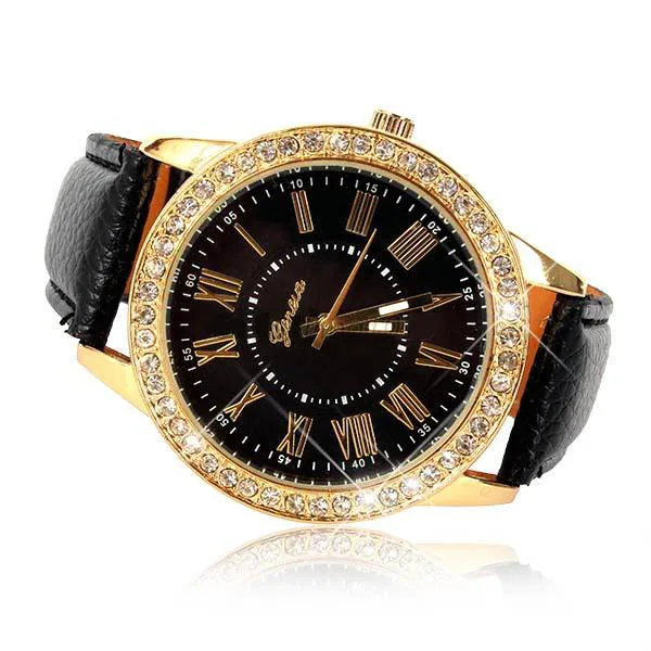 패션 라인 석 손목 가죽 최고 브랜드 럭셔리 여성 쿼츠 시계 캐주얼 팔찌 시계 크리스탈 다이아몬드 Reloj Mujer
