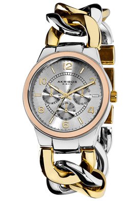 -. Title : Akribos GMT Multi-Function Tri-Tone Ladies Watch AK531TTR