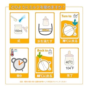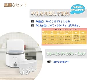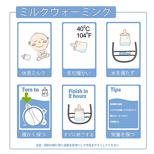 2.ミルクは冷凍庫、冷蔵庫または室温から温かく均等に温められます。 冷蔵庫からボトルを加熱する場合は、ノブを「ヒートフード」モードに1-2分ほど回してから、「ウォームミルク」モードに戻って解凍を加速します。
