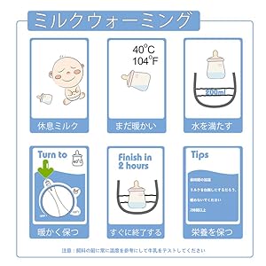 この暖かい乳器はイギリスに由来して、「簡単で使いやすい、環境保護」の理念に基づいて、この2本の温乳器を設計して、同時に2本の乳と補食をして、高いふたを加えて熱の放出を防止することができて、熱乳のスピードを速めて、両親に余裕を持って多くの子供の餌に対処することができて、生活はもっと楽になります!