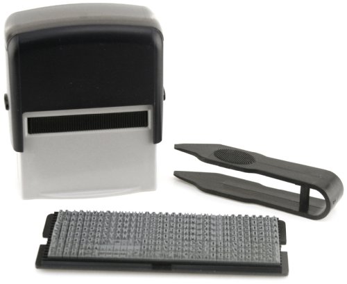 -. Feature : Build your own custom stamp with up to 4 lines of text / Create and re-create any impression to fit your needs / Kit includes one self-inking stamp mount with black stamp pad, two sets of characters, one pair of tweezers / Impression size: 3/4 x 2 inches / Contains 90% recycled content