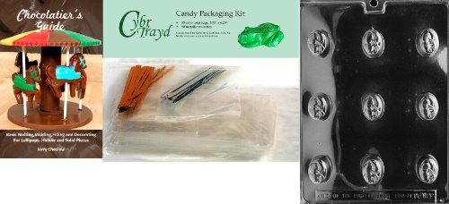 Cybrtrayd Oval Cherry Bon-Bon All Occasions Chocolate Candy Mold with Chocolatier's Bundle, Includes 50 Cello Bags, 50 Twist Ties and Chocolatier's Guide