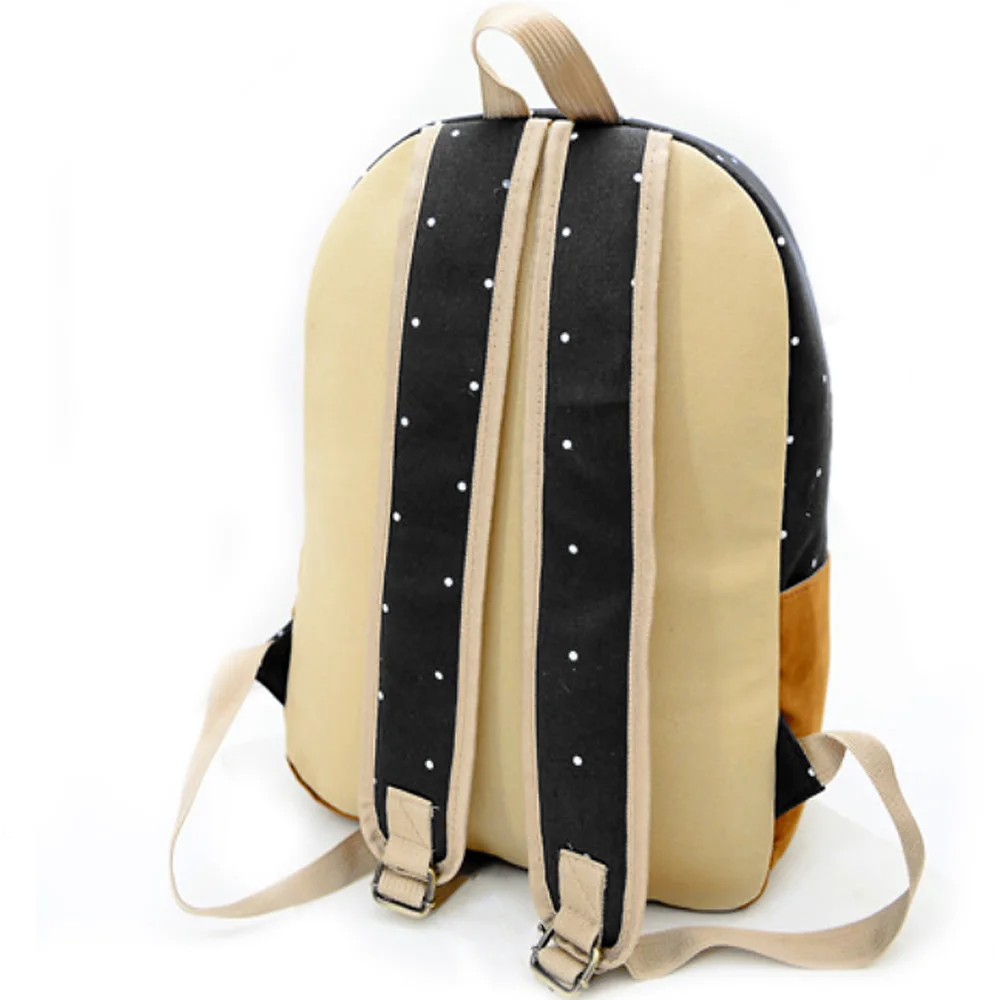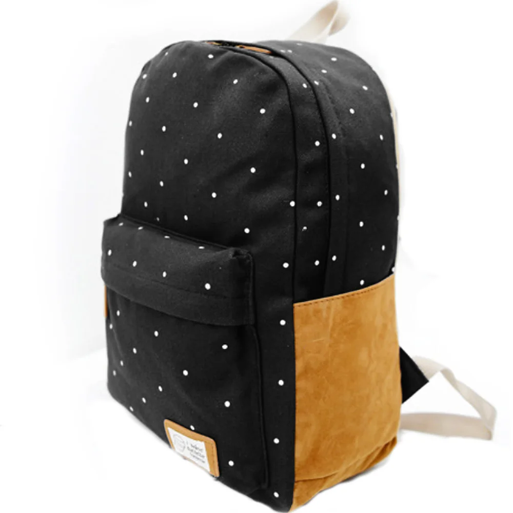 - Canvas Backpack Satchel Rucksack Dot Printing Schoolbag Leisure Travel Shoulder Bag Black