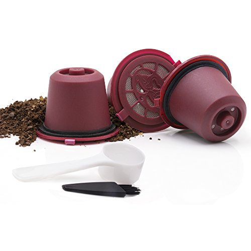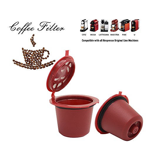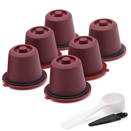 BRBHOM Reusable Nespresso Capsules Refillable Coffee Capsule Filter Compatible with Nespresso coffee machines with Coffee Spoon brush (6, Red)