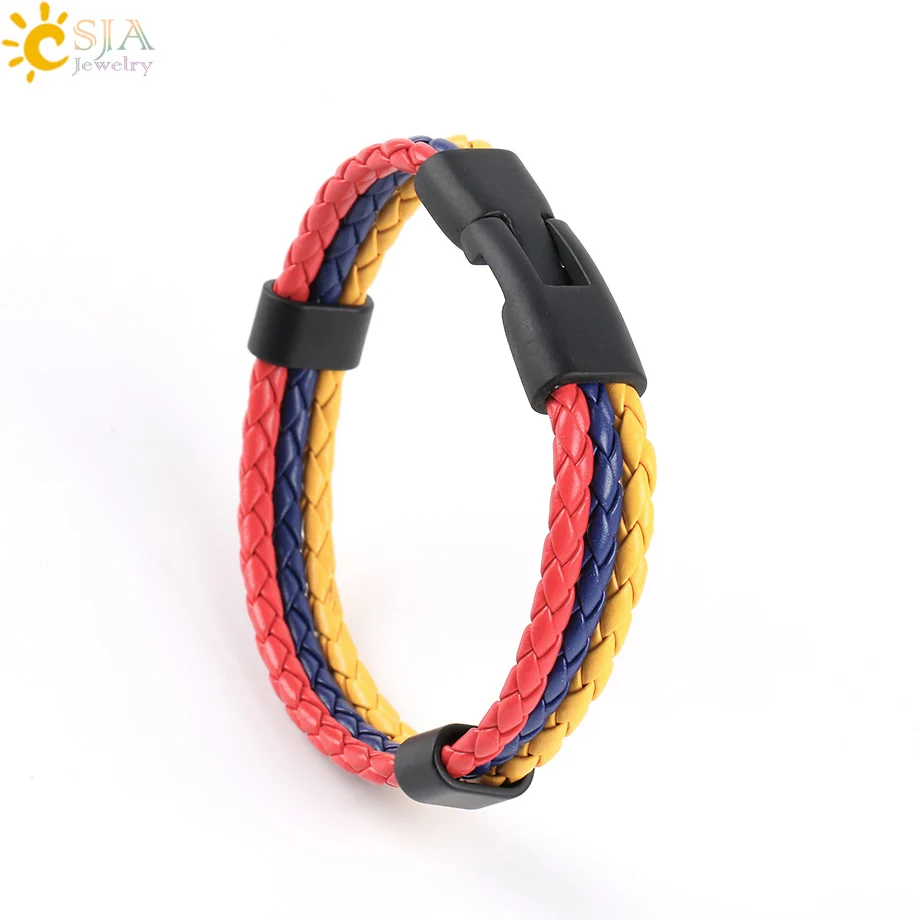 Bracelets Feature:Real Handmade + Flag Colors Braided Leather + Unisex Design