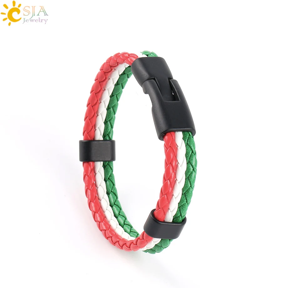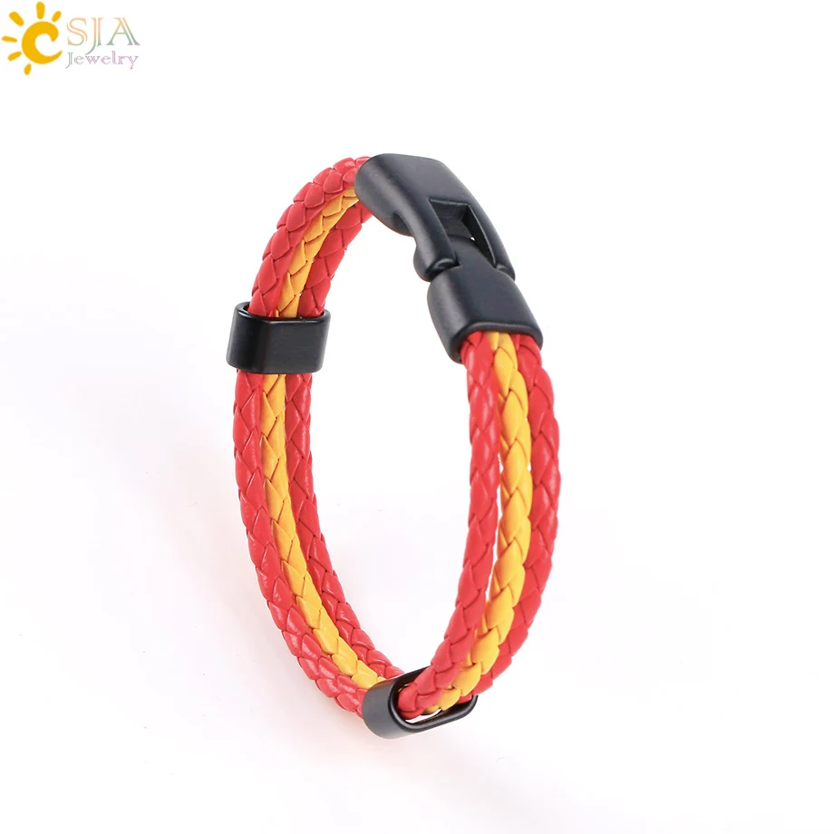 Product Name:Nation Flag Color PU Leather Sports Handmade Bracelets for Men & Women