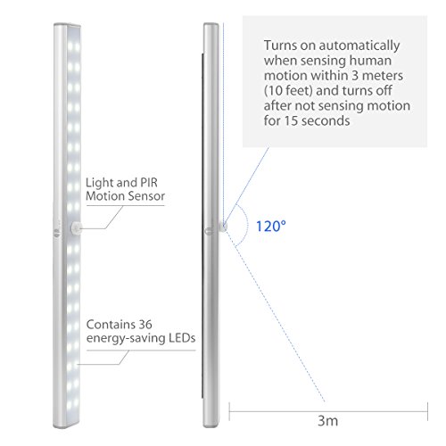 - Motion Activated: Turns on automatically when sensing human motion within 3 meters (10 feet) and turns off after not sensing motion for 15 seconds. 120 degree sensing range for reliable performance.