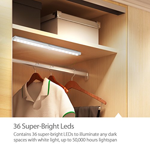 1byone Wireless Motion Sensor LED Light, Rechargeable Portable 36 LEDs Night Light Bar with Magnetic Strip Lighting for Closet, Cabinet, Bedroom, Washroom, Hallway, Wardrobe, Bookcase
