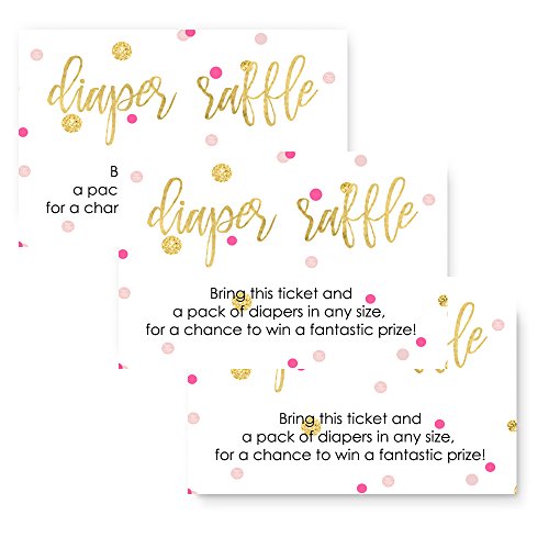 Glittery Pink Baby Shower Diaper Raffle Game Stylish Invite Insert Card (25 pc.)