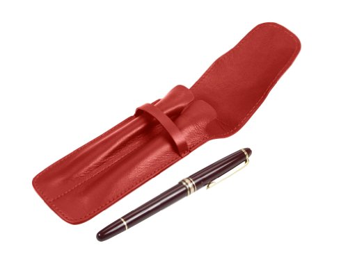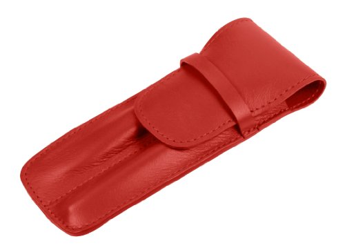 Lucrin - Double Pen Case with Flap - Red - Smooth Leather