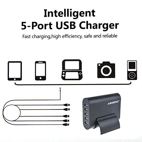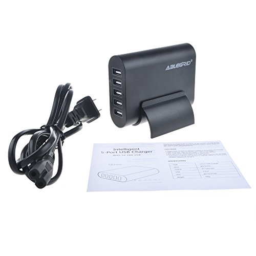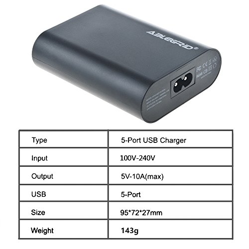 ABLEGRID 5V 10A 50W 5-Port USB Charger Travel Desktop Adapter Rapid Charging for Apple iPhone 6S, 6S Plus,iPad Air, mini,Samsung Galaxy S6, Edge, Plus and Many Other Devices (Black)