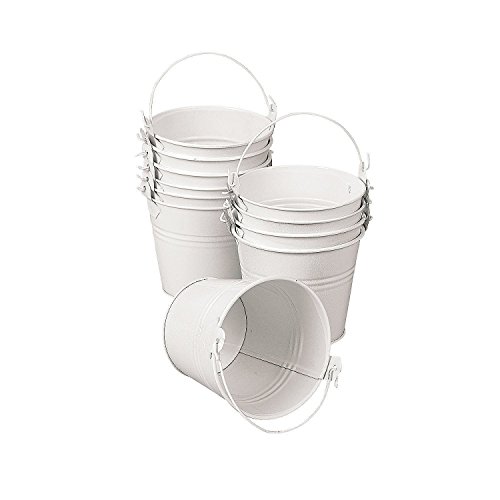 2 Sets of 12 Fun Express Metal Mini White Pails bundled by Maven Gifts