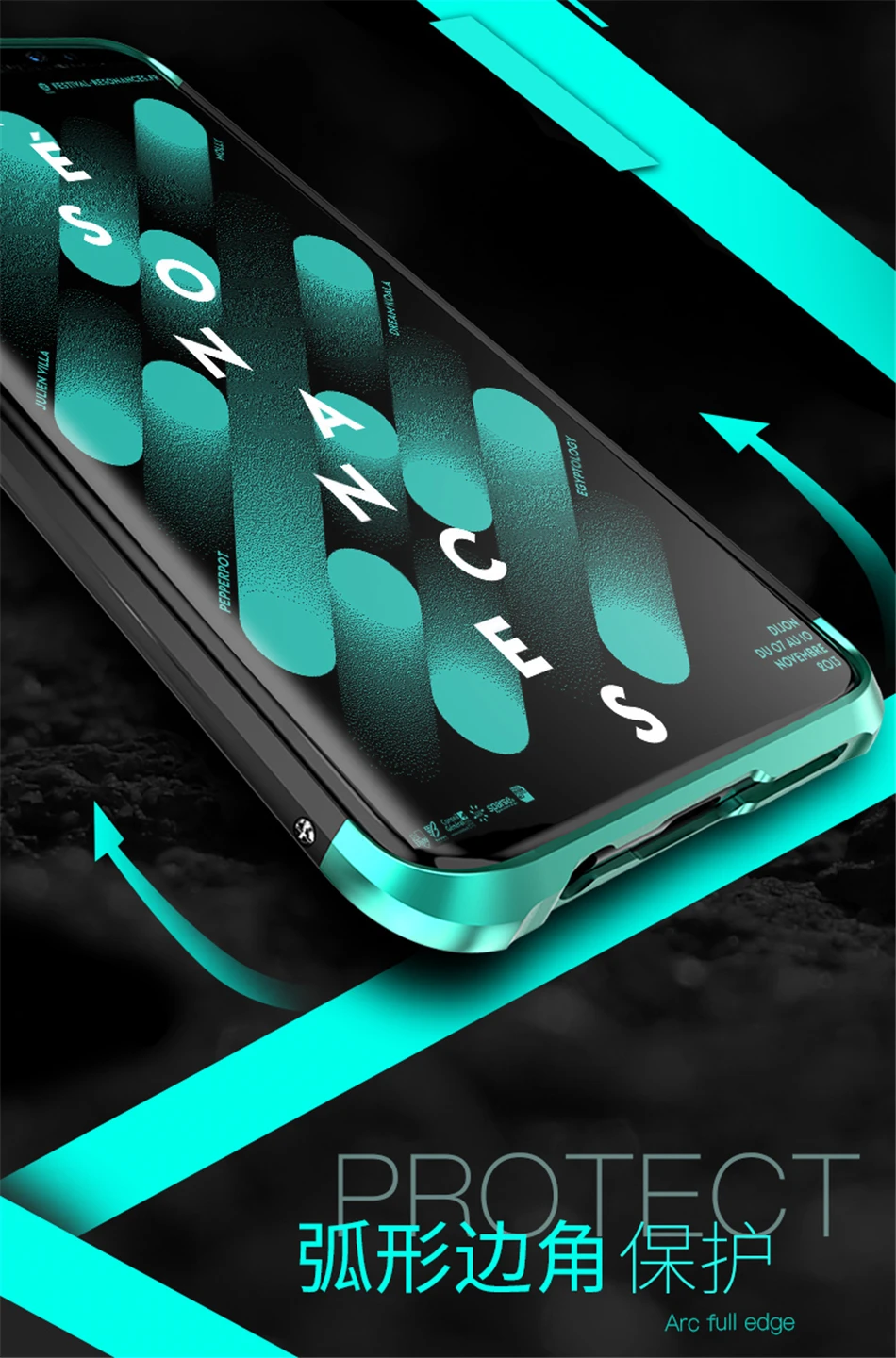 Materal:Aluminum Metal bumper + PC backplane
