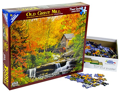 -. Binding : Toy -. Brand : White Mountain Puzzles -. Department : Landscapes -. EAN : 0724819256419 -. Feature : FAMILY TIME: Jigsaw puzzles are a great family activity. Enjoy some quality time with your family or just relieve some stress while putting together this calming puzzle of autumn colors by White Mountain Puzzles. / PICTURE PERFECT: Artist Elizabeth Carmel illustrates a peaceful scene set in the West Virginia backwoods in this puzzle. Ms. Carmel is a professional fine art photographer specializing in unique, expressive landscapes and "waterscapes". / THE PIECES: This puzzle of breathtaking beauty consists of 1000 unique interlocking pieces that are made of sturdy blue chipboard on recycled paper. It has extra large pieces making them easy to pick up. / FINISHED PRODUCT: When you complete this puzzle of Old Grist Mill by White Mountain Puzzles, you will have an amazing 24" x 30" picture puzzle. Frame it and add a sense of peace and calmness to any room in your home. / HAPPINESS GUARANTEE: White Mountain Puzzles are proudly manufactured in America and come with a 100% customer satisfaction guarantee. All of the 1,000 piece jigsaw puzzles are made of premium blue chipboard. -. IsAdultProduct : 0 -. ItemPartNumber : 1040 -. Label : White Mountain Puzzles, Inc. -. Manufacturer : White Mountain Puzzles, Inc. -. Model : WM1040 -. MPN : WM1040 -. NumberOfItems : 1 -. PackageQuantity : 1 -. PartNumber : WM1040 -. ProductGroup : Toy -. ProductTypeName : TOYS_AND_GAMES -. Publisher : White Mountain Puzzles, Inc. -. Studio : White Mountain Puzzles, Inc. -. Title : White Mountain Puzzles Old Grist Mill - 1000 Piece Jigsaw Puzzle -. UPC : 885517731148 -. Warranty : No Warranty