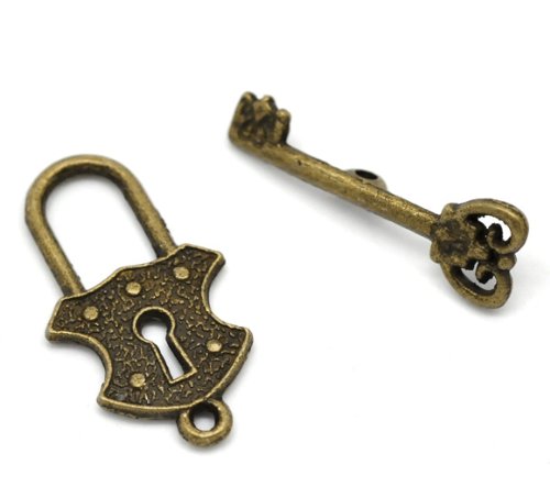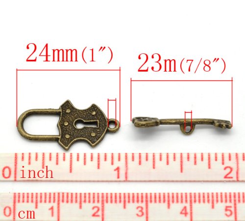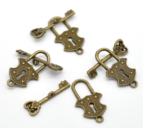 28 Sets Bronze Tone Key and Lock Bracelet Toggle Clasps - Findings, DIY Crafts, Jewelry Making