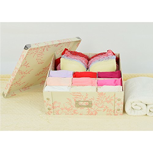 -. Title : 13.8x13x4.7" inches Paper Product Closet Organizer Box Collapsible Storage Boxes Drawer Divider for Clothing, Bra, Underwear, Blankets, Towels, Bibs (Beige&Red Flower,9+1grid)