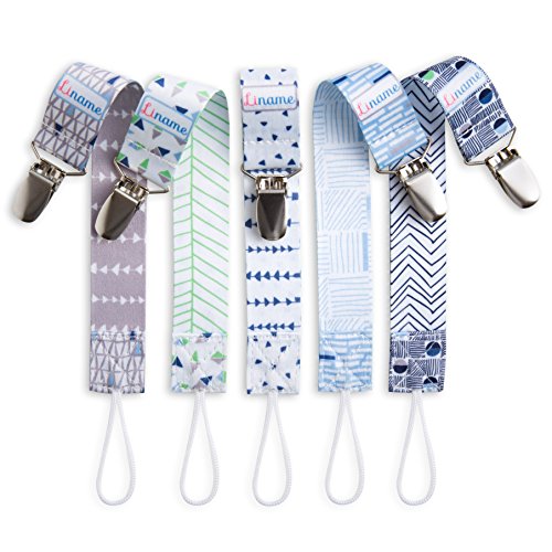 Pacifier Clip Boys by Liname - 5 Pack - Premium Quality Universal Pacifier Clips - Modern 2-Sided Stylish Design - Soothie Pacifier Holder