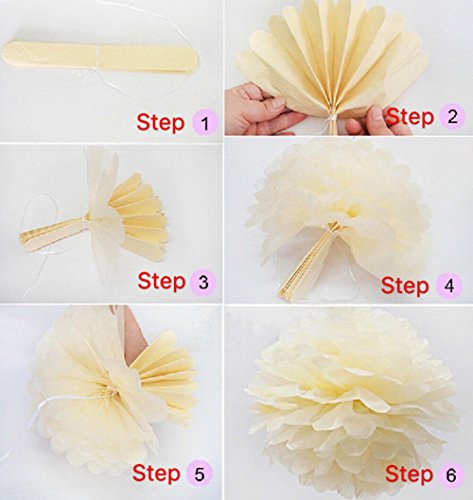 Tissue paper pom balls are appro.7.1 inches in length for each. Colors: hot pink/purple/pink/cream/blue/apple green.