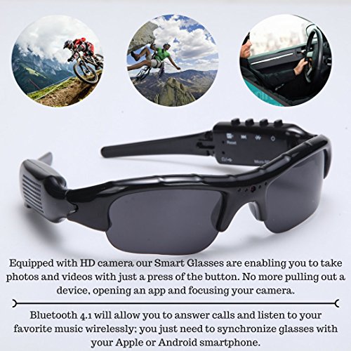 -. Binding : Electronics -. Brand : All4life -. EAN : 0605945945043 -. Feature : Driving recorder: An easy-to-use high-definition driving recorder, that records both audio and video, and allows you to set the date and time to pinpoint when events occurred. / Scenery photography: Take photographs without taking your hands off handle bars. / Bluetooth 4.1 will allow you to answer calls and listen to your favorite music wirelessly; you just need to synchronize glasses with your Apple or Android smartphone. / Supports 32-128GB external TF card storage for your favorite music / Long-Durable and efficient energy efficient: 2 hours continuous recording and 4 hours of continuous sustained childhood pictures 8 songs 10 hours of continuous talk time 200 hours standby -. Label : All4life -. Manufacturer : All4life -. MPN : all4life -. PackageQuantity : 1 -. PartNumber : all4life -. ProductGroup : Photography -. ProductTypeName : CAMERA_LENSES -. Publisher : All4life -. Studio : All4life -. Title : All4life 1080P HD Camera Glasses With Bluetooth Handsfree Answer and MP3 Video Recording Sport Sunglasses DVR Eyewear -. UPC : 605945945043