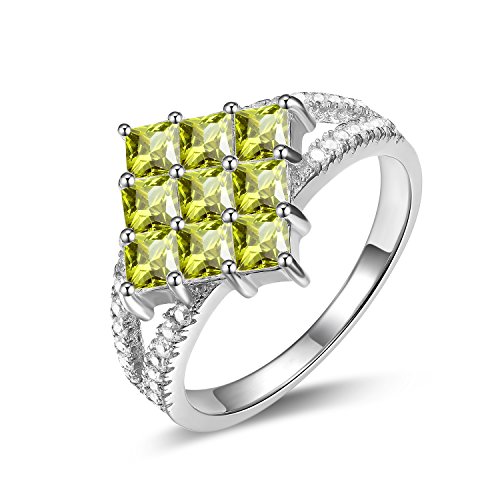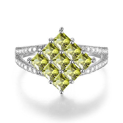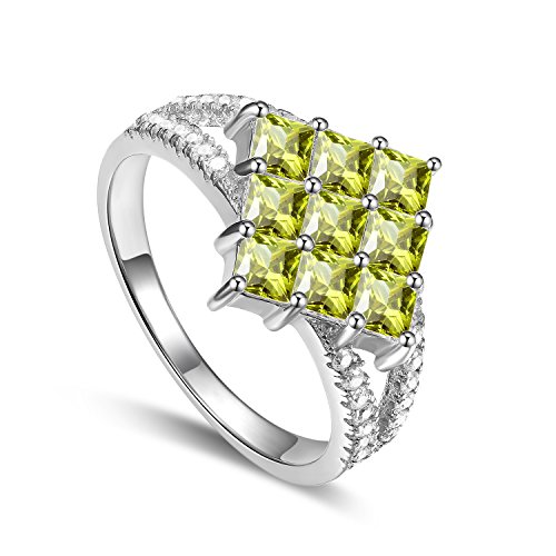-. Title : GTR4415 S925 Silver Simulated Rhinestone Peridot Square Stone Ring Rhodium Plated