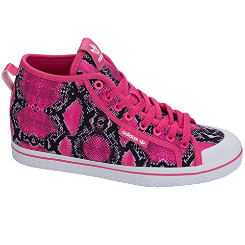 Studio : adidas Originals Publisher : adidas Originals Binding : Apparel Product Description Women's adidas Originals Honey Up Trainers in Joy Pink.- Lace up closure with metal eyelets.- Lightly padded collar and tongue.- Mid profile ankle trainer.- Rubber toe cap.- Heel pull tab.- Removable 1.5 wedge cushioned insole.- Vulcanised rubber outsole.- Snake skin printed pattern throughout. - Textile and synthetic upper, Textile lining, Synthetic sole- Ref: S77431 0