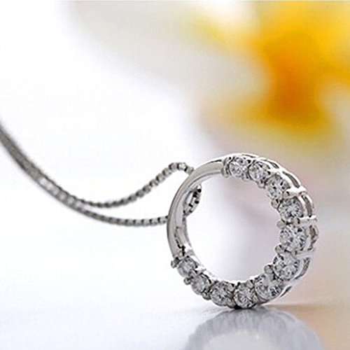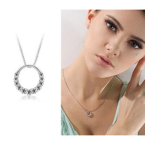 Popular cute CZ Cubic zirconia ring necklace in adult women. Motif: Ring Material: 925 Silver Stone: CZ cubic zirconia 11 pieces are used Chain: Box Chain type Material: 925 Silver Length: is the most popular of cute CZ Cubic zirconia ring necklace to 44.5cm adult women.