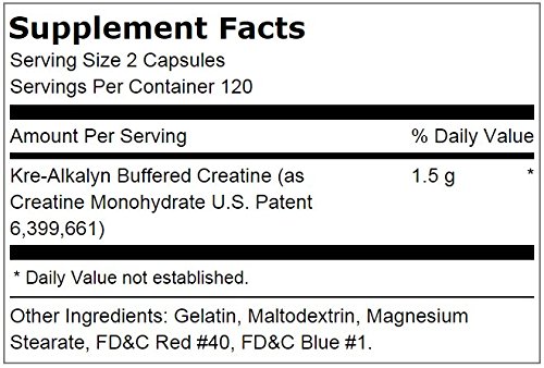 -. Feature : 1,500 mg buffered creatine in 2 caps / Helps athletes with short, intense bursts of energy / Patented creatine stabilization technology / No bloating, loading or cycling / May promote gains in power, strength, muscle size and lean body mass