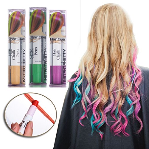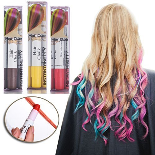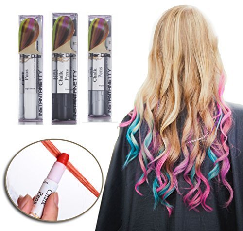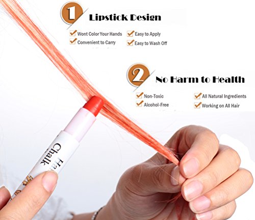 Temporary Waxy Hair Color Chalk & pens, The Staying Power Up To Two Days; Easy To Apply, no mess, built in sealant, works on all hair. Color Washes Out Easily With Shampoo.