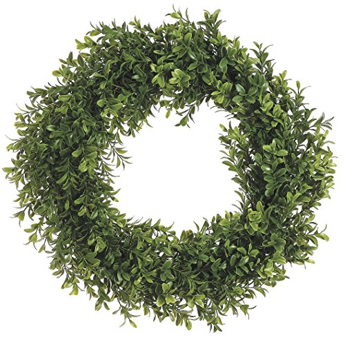 - 17 inch artificial boxwood wreath on wrapped vine base