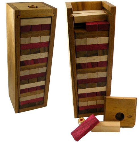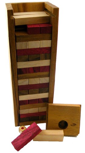 Studio : Winshare Puzzles and Games Publisher : Winshare Puzzles and Games Binding : Toy Product Description Beautiful handmade version of this traditional popular and fun building classic game that has stood the test of time. Here in a triple wooden colors version, and includes a wooden dice. The Jumbling Tower game combines test of skill, balance, strategy patience The Jumbling Tower construct from 54 blocks and is 18 stories tall. This beautiful wooden game set comes complete with a finely hand-crafted wood case to hold all of the pieces. A sliding wooden base allows for easy game setup. Take turns to remove the wooden bricks from the stack and replace them on the top. The tension mounts until finally the inevitable happens and someone causes the stack to tumble down. You can play it with any number of players aged 5 years - adult. 0