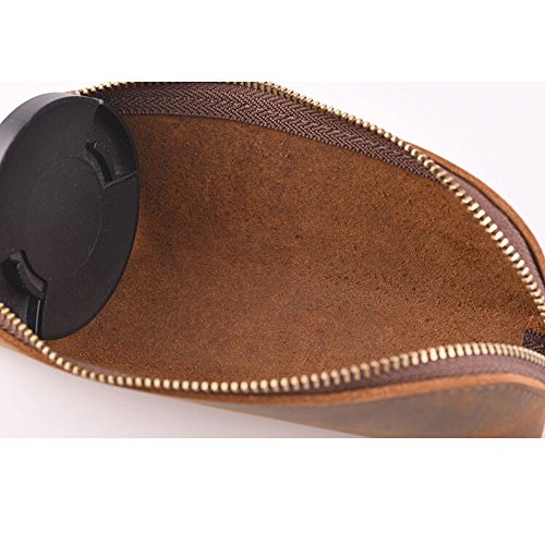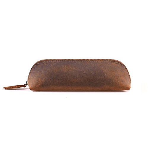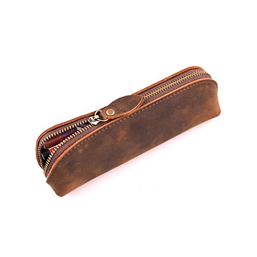 Longpro Handmade Genuine Leather Pen Case Pencil Holder with Zipper, Stationery Cosmetic Coin Purse Pouch Bag for Students Professionals and Artists Gift
