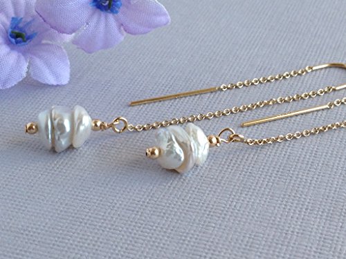 -. Title : 14k Gold Filled Threader Earrings with Keishi or Cornflake Pearls, Gold Ear Threads with Pearls