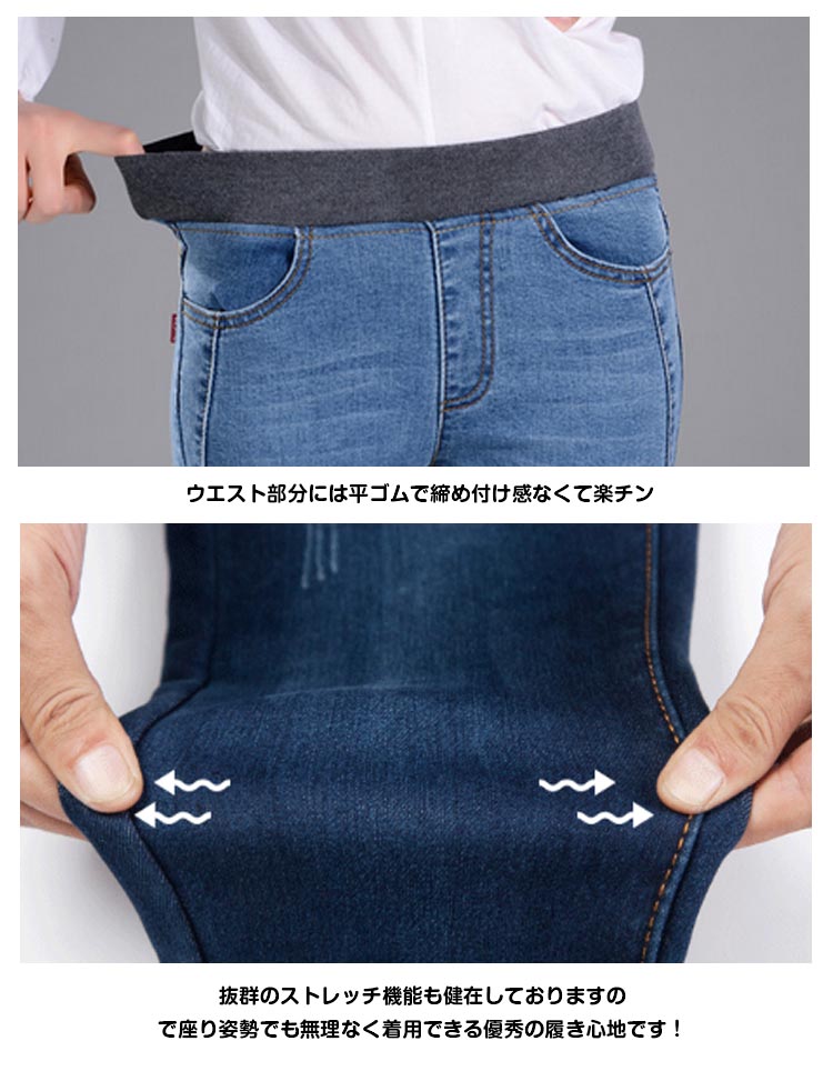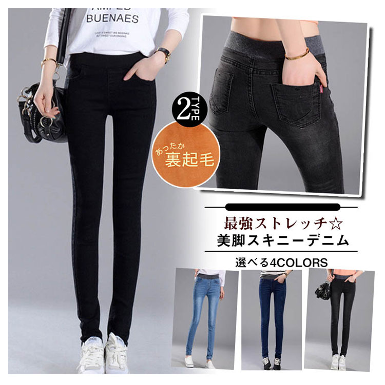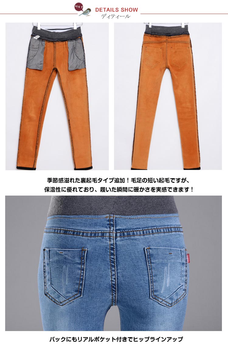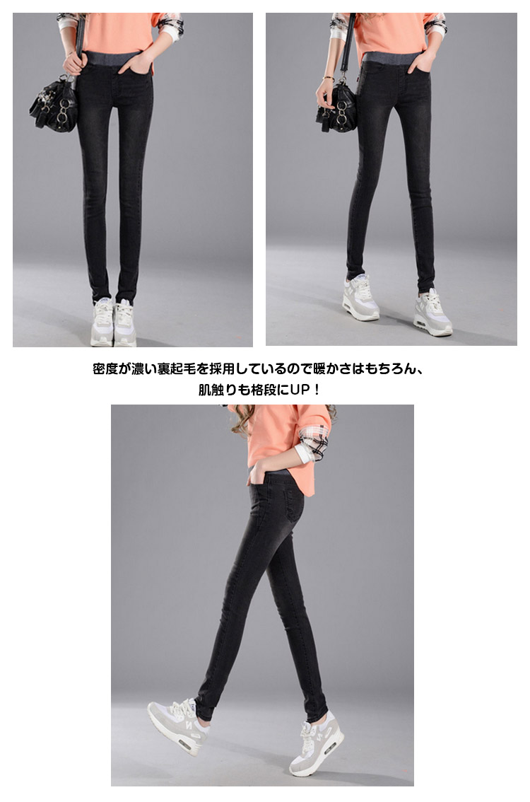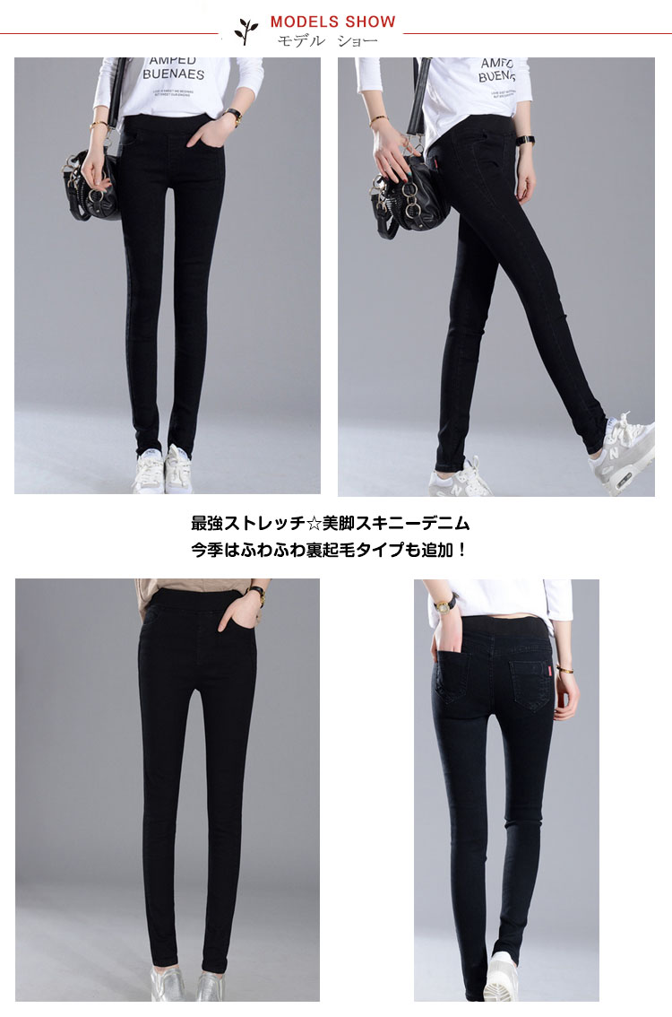 | 最強ストレッチ☆美脚スキニーデニム今季はふわふわ裏起毛タイプも追加!密度が濃い裏起毛を採用しているので暖かさはもちろん、肌触りも格段にUP!冬が大嫌いなあなたも好きになれる暖かさ&着心地をを実感できること間違いナシです。カラバリ展開なのでデイリーでお使いいただけます。一度穿いたら色違いで買いたくなること間違いなし! | |