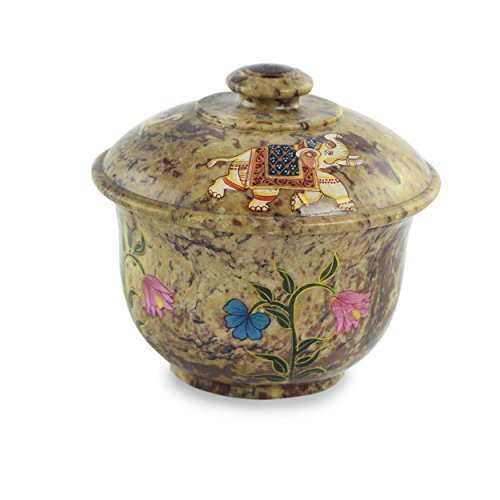 NOVICA "Elephant Garden" Hand-Painted Motif Soapstone Box and Lid