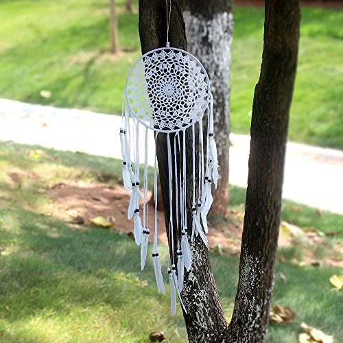 Handmade Flocked Fabric White Feather Dream Catcher Wall Hanging Car Hanging Home Decoration (Pistil)
