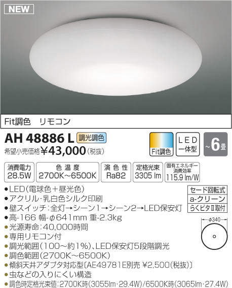 ●調色時定格光束値:2700K時(3055lm・29.4W)/6500K時(3065lm・27.4W)