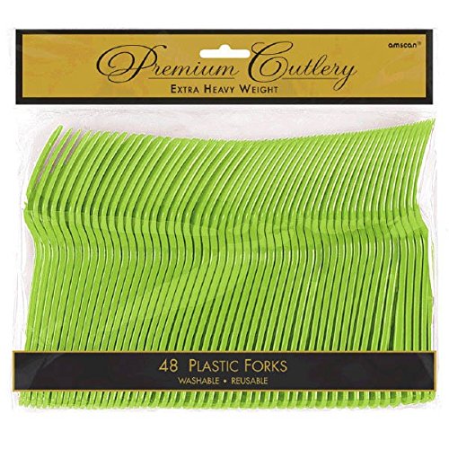 Heavy Duty Party Forks Tableware, Kiwi Green, Plastic , Full Size, Pack of 48