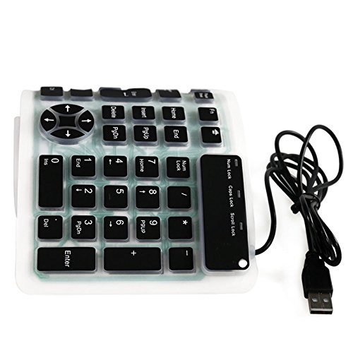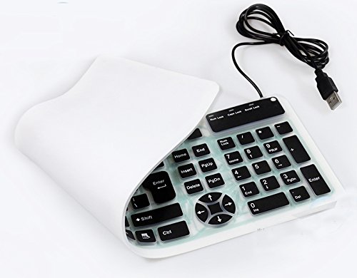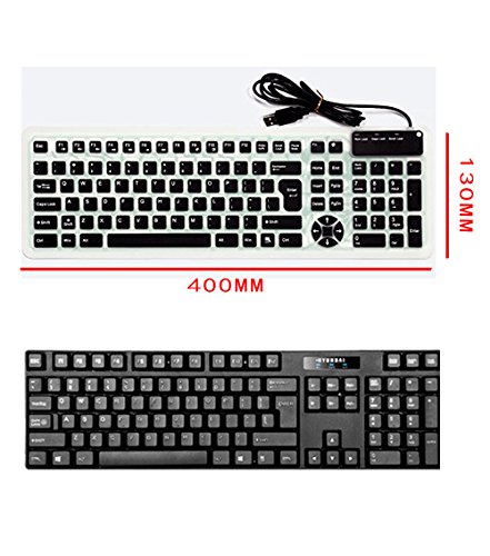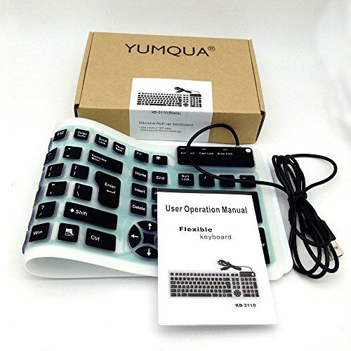 YUMQUA Portable Wired USB Flexible Foldable Silicone Numeric Washable Keyboard Soft Waterproof Roll up Ultra-Slim 107 Keys for iPad Laptop PC Mobile Devices