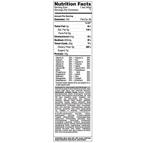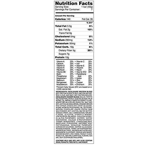 -. Feature : HUNGER-BLOCKING - Our meal replacement bars help you crush cravings and feel full for up to 3 hours. / DELICIOUS - Satisfy your sweet tooth with IdealBar. These weight loss snacks taste more like candy! / LOW-CALORIE - IdealBar fills you up with only 140 calories and less than 10g of sugar. / HIGH-PROTEIN - These meal replacement bars are packed with protein to help you stay full and lean. / CONVENIENT - IdealBars are the perfect, healthy grab-and-go snack that you can take anywhere.