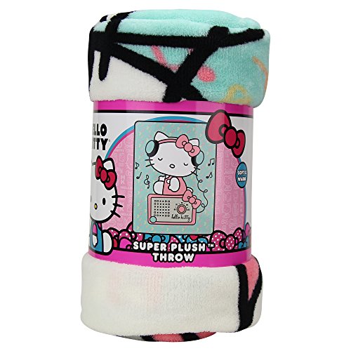 Kid's Colorful Character Micro Raschel Throw Blanket 46" x 60" (Hello Kitty "Rocking Kitty")