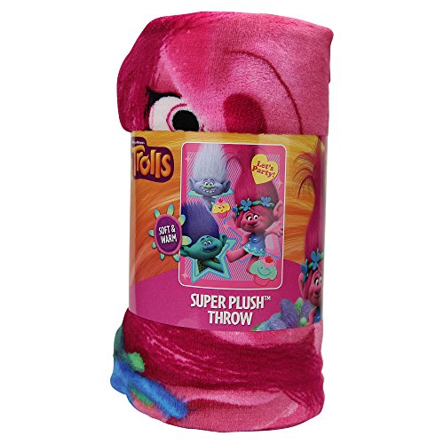 Kid's Colorful Character Micro Raschel Throw Blanket 46" x 60" (Trolls "Let's Party")