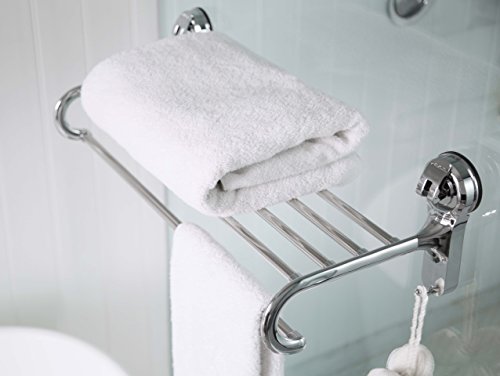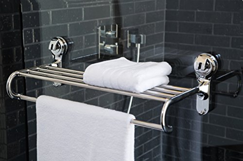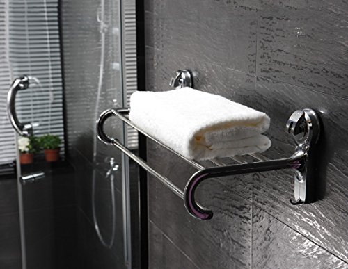 Powerful industrial suction cup system that lets you adjust and mount this towel shelf and rack on any non-porous surfaces in your bathroom shower