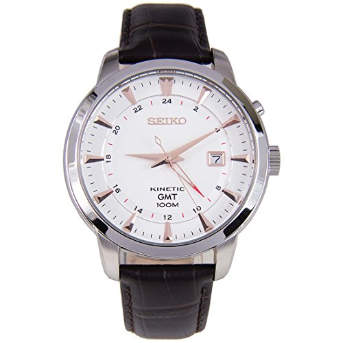 세이코import 세이코 SEIKO SUN035P1 Mens Kinetic GMTStainless Steel CaseLeather Strap100m WR SUN035 남성 맨즈 손목시계 【병행수