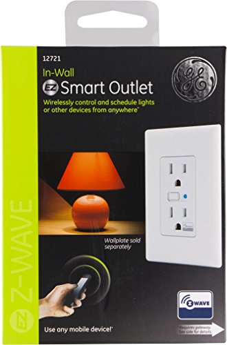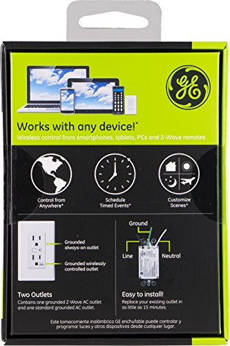 GE Z-Wave Wireless Smart Lighting Control Duplex Receptacle Outlet, On/Off, In-Wall, White, Works with Amazon Alexa, 12721